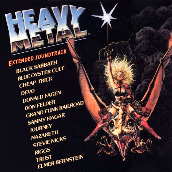 1981The animated sci-fi film Heavy Metal is released. Although it shares its name with the hard-rock genre, the film isn't intended to have anything to do with music, but instead is an anthology of various stories from the comic magazine Heavy Metal. Almost as an afterthought, an all-star soundtrack is added, featuring songs by Sammy Hagar, Devo, Blue Öyster Cult, Cheap Trick, Journey, and Black Sabbath, to name a few.