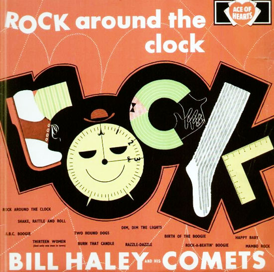 1955Bill Haley & His Comets' "Rock Around The Clock" becomes the first Rock song to hit #1 on the Billboard Pop chart, where it stays for eight weeks. The song was originally released as a the B-side of "Thirteen Women," but became a massive hit after it appeared in the film Blackboard Jungle.