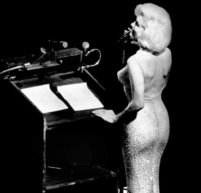 1962Less than three months before her death, Marilyn Monroe makes one of her last public appearances at President John F. Kennedy's 45th birthday celebration, where she famously sings "Happy Birthday, Mr. President" in his honor.