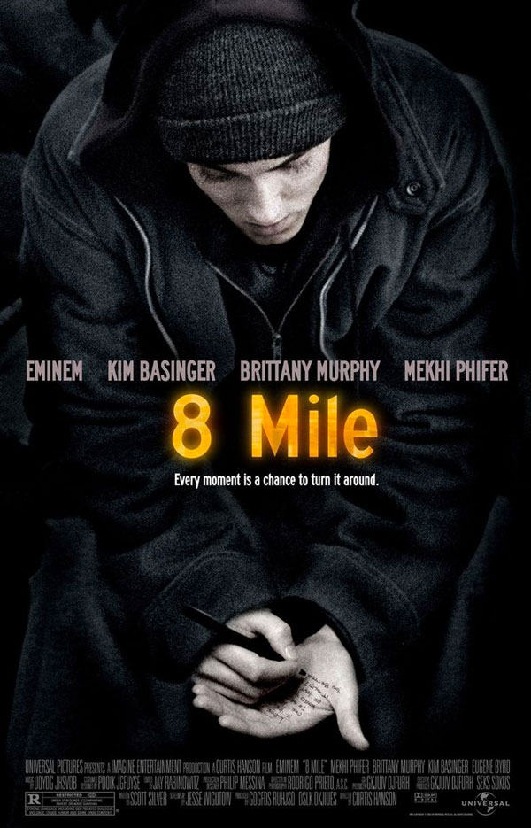 20028 Mile, a semi-biographical look at Eminem's early days as a struggling rapper in Detroit, opens in theaters. The film is a critical and commercial success, and Eminem's "Lose Yourself" becomes the first rap song to win the Oscar for Best Original Song.